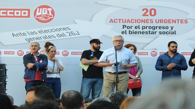 Para CCOO y UGT “los graves problemas de la gente no pueden esperar más”, por lo que exigen un cambio de gobierno que haga factible el fin de las políticas de austeridad y de recortes de derechos económicos, sociales y laborales. “Las próximas elecciones generales del 26 de junio deben ser el punto de partido definitivo para comenzar ese giro hacia el progreso de forma clara y sin demora”, dicen los sindicatos en su llamamiento,.