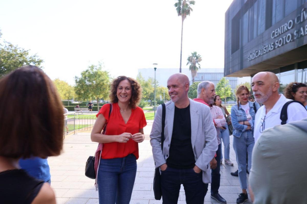 Unai Sordo y Nuria López antes de participar en una asamblea de delegadas y delegados en Sevilla