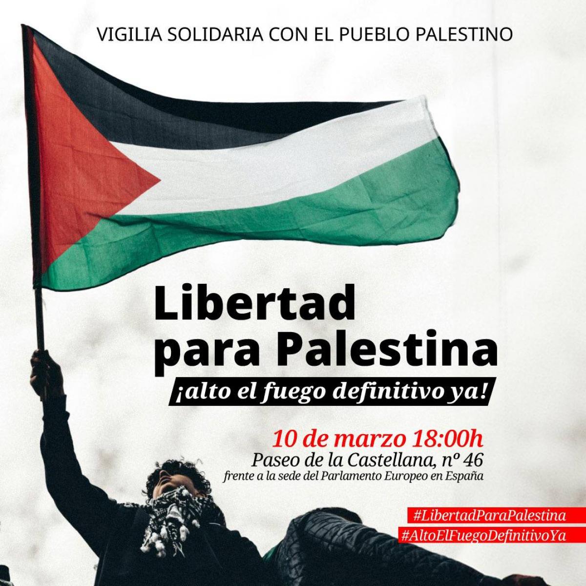 Con esta vigilia queremos denunciar la inactividad de la Unión Europea y sus instituciones para ejercer una presión clara y contundente contra estas acciones genocidas. Además y con motivo de la cercanía del 8 de marzo, Día Internacional de la Mujer, queremos rendir homenaje a las decenas de miles de mujeres asesinadas vilmente por el ejército israelí, fallecidas muchas de ellas junto a sus propios hijos y denunciamos la violencia sexual ejercida contra las mujeres palestinas por parte de soldados israelíes. Brutalidades que no pueden quedar impunes.