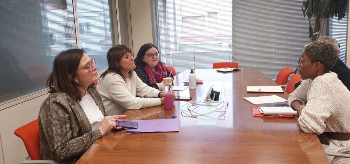 Carolina Vidal, Cristina Faciaben y Alejandra Ortega reunidas con Gemma Jones, fotograf铆a de Eva Ant贸n.