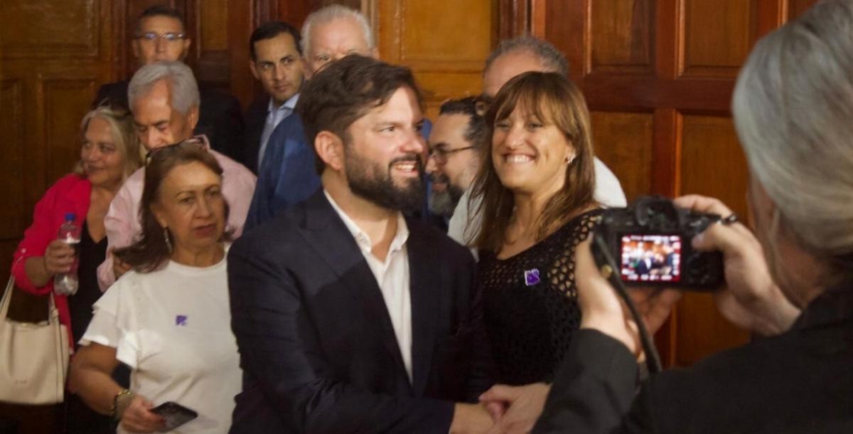Cristina Faciaben junto a Gabriel Boric, ex presidente de Chile, durante el congreso sindical celebrado en Santiago de Chile.