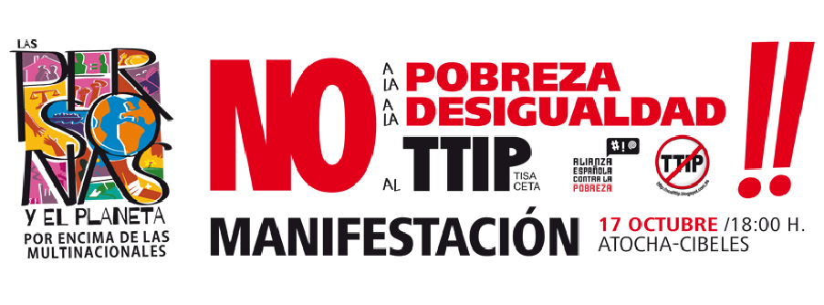La Alianza Española contra la Pobreza y la Campaña #NoalTTIP llaman a movilizarse contra un sistema que protege a las multinacionales, a los mercados y al capital mientras empobrece a las personas, recorta sus derechos y degrada profundamente el planeta que habitamos.